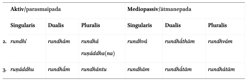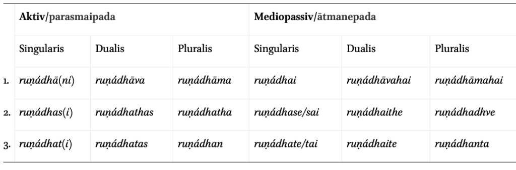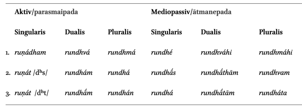 Klasse 7 (rudhādi) ruṇáddhi rundhánti