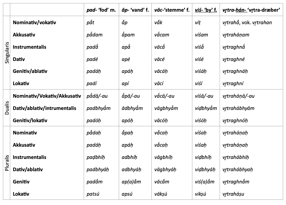 Sg | Urie. | Vedisk | Græsk | Latin |